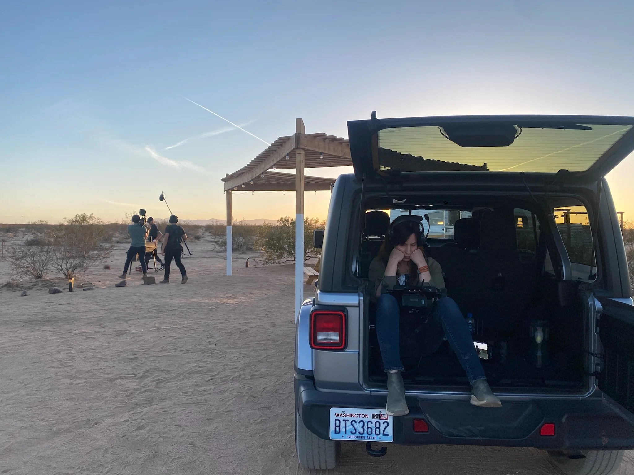 I can often be found hiding out of frame, sometimes in the trunk of a jeep as seen below, watching a monitor.